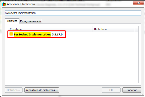 - Search for the "SysSocket Implementation" library and double-click to add it, as shown in the image below: