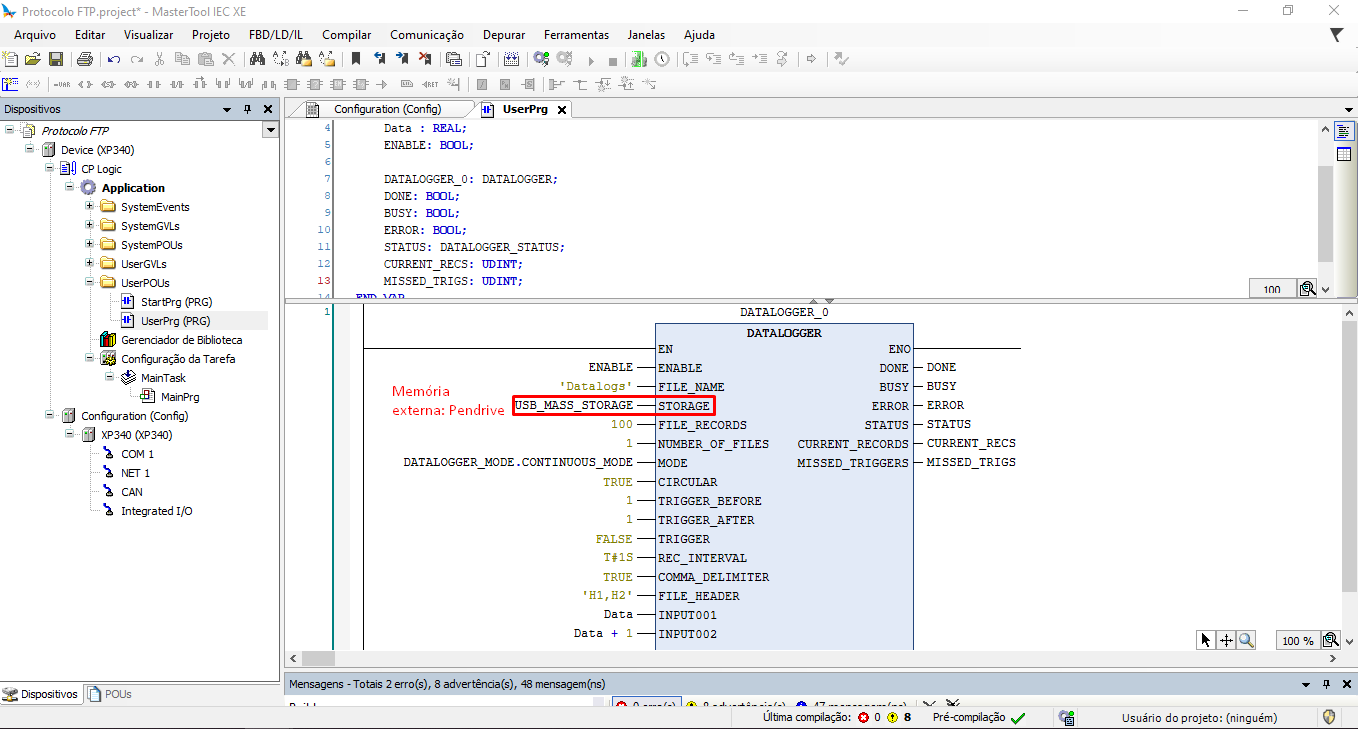 This tutorial describes the procedures to record Datalogger data to an external memory of the PLC, which will be configured as an FTP server and have its files remotely shared using FileZilla as the FTP client.