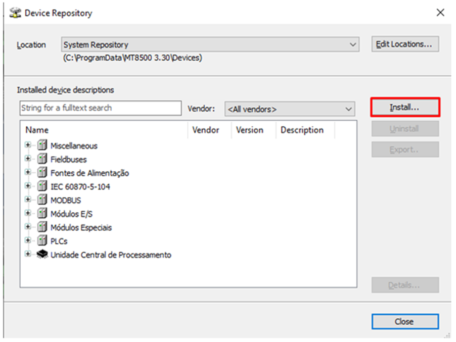 The Device Repository window will open. Click on Install.