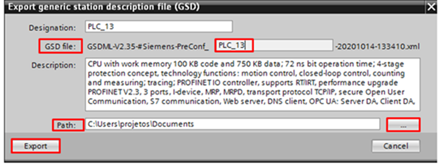 Done, the CPU's GSDML file has been generated and can be used in the Nexto Xpress CPU project.