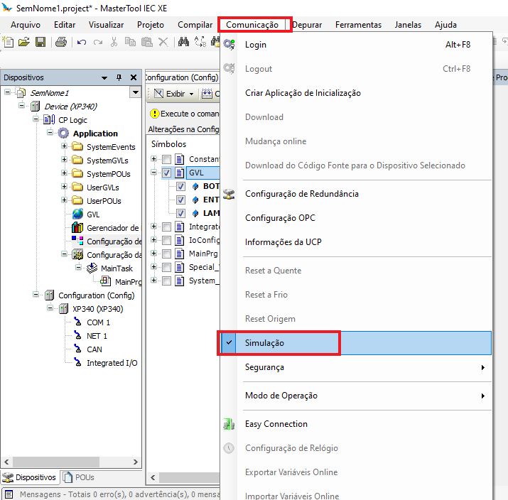 In communication, put MasterTool in simulation mode.
