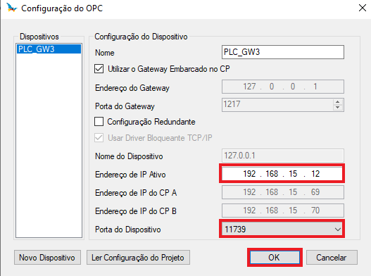 Click again on Communication >> OPC Configuration. Make sure the active IP is your localhost IP 127.0.0.1 and change the device port to 11739