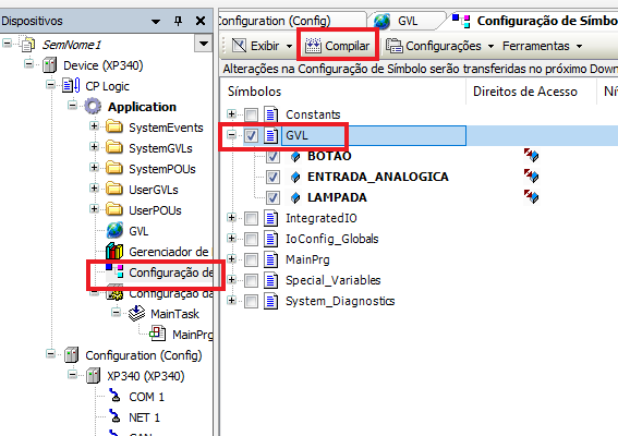 Open the option Objects >> Device Set>> XP 340>> Resources >> Application >> Global Vars and select the desired GVL. Finally, click OK