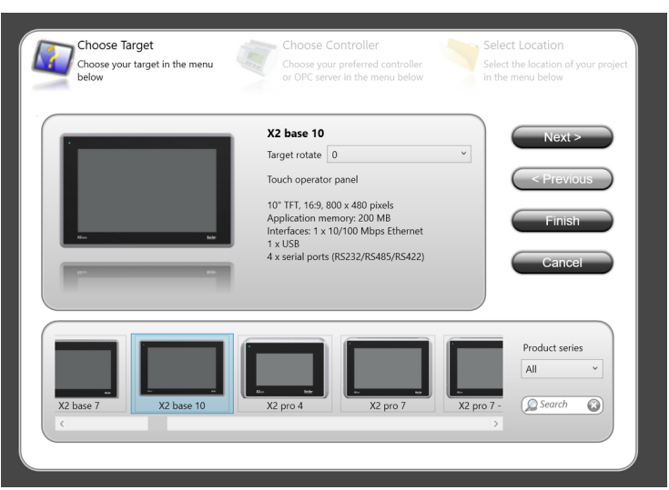 Open the iX Developer software as administrator; On the screen that opens click Create New Project; select an HMI screen and click Next