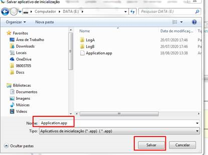The Save initialization application window will open. To save the Application.app file, select the root of the USB Flash Drive and click Save.