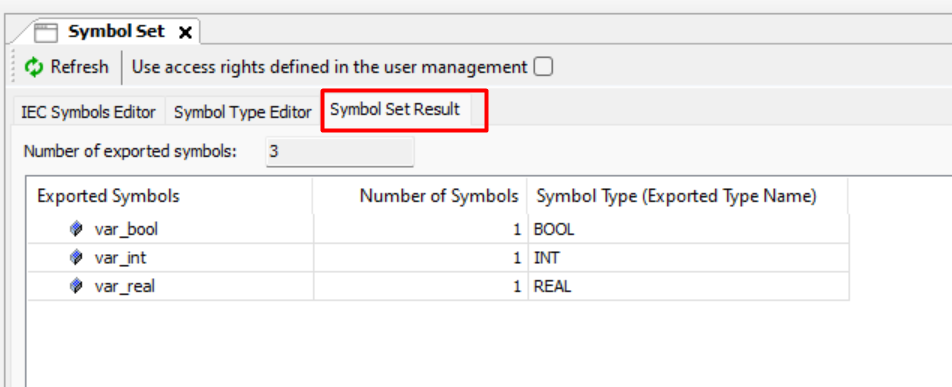 To confirm if your variables were added, you can check the Symbol Set Result tab, where the number of exported symbols and their list should appear.