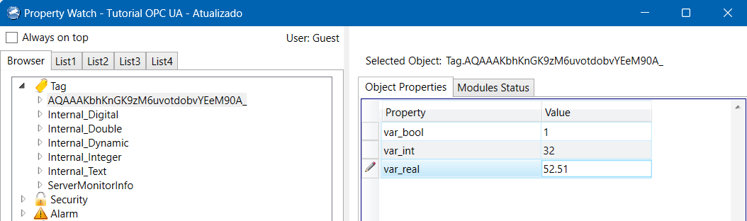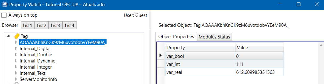 Here, you can open the variable created by OPC, and monitor and change the values of the created variables. We will demonstrate an example of writing and an example of reading.