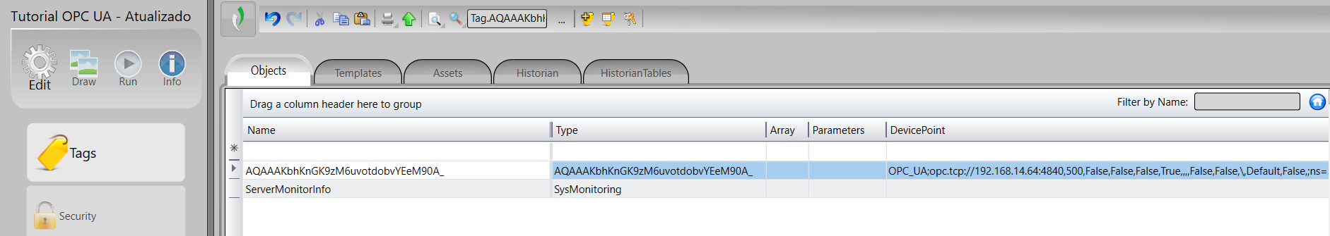 Also, in the TAGs tab, a TAG was created where the variables are mapped. You can see it has a type with a different name, which is encrypted.
