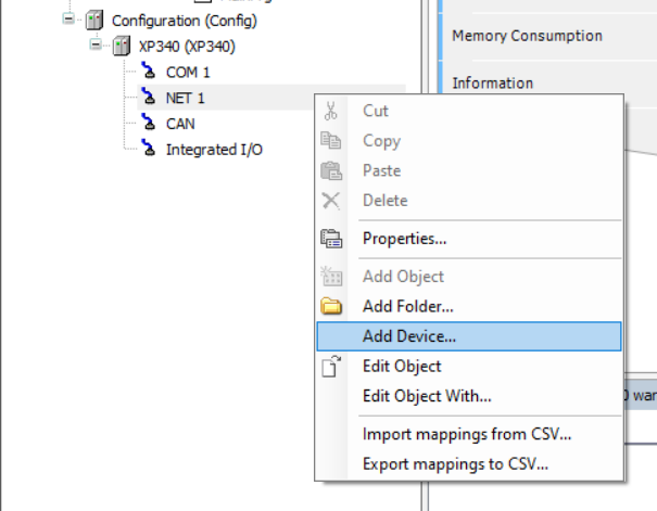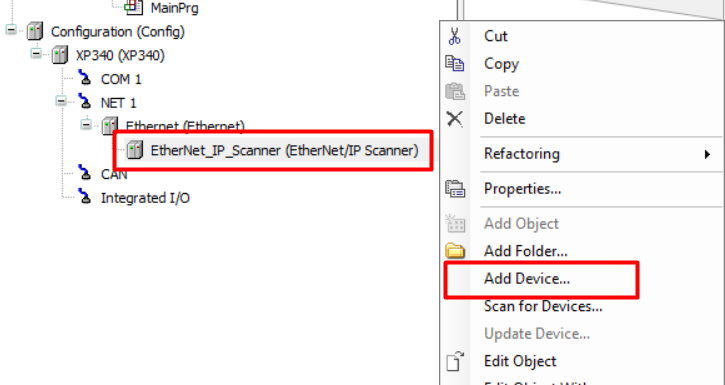 Let's add an XP340 PLC as a Scanner to communicate with the remote we configured in section 2,