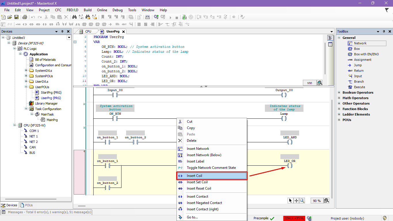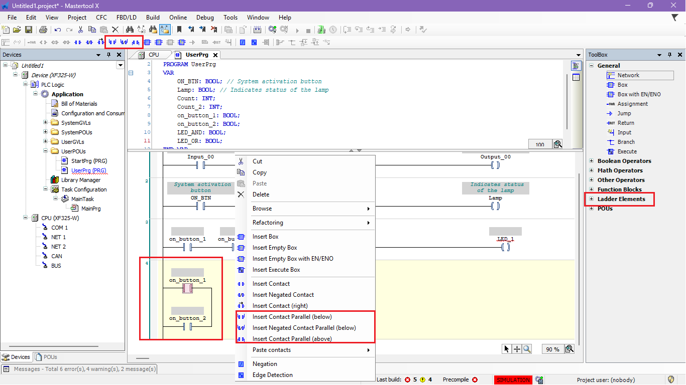 The objective of this tutorial is to demonstrate the insertion of parallel contacts to create an OR logic in a MasterTool X project.