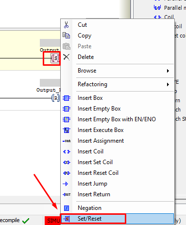 If a conventional coil already exists in the logic, it is not necessary to remove it to use SET or RESET: