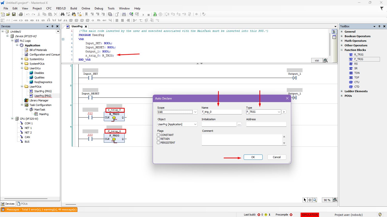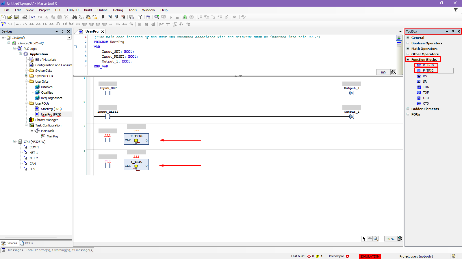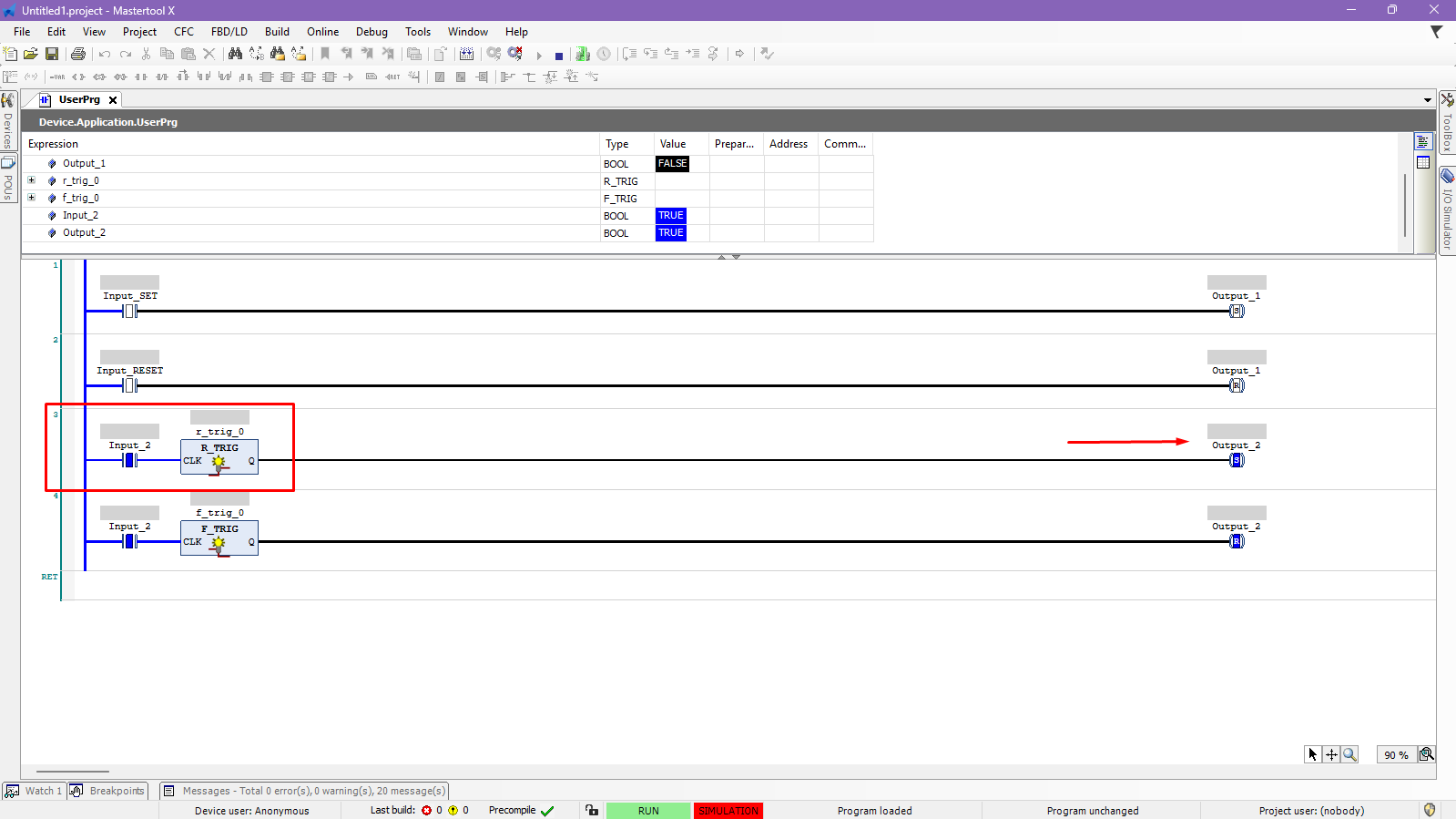 The objective of this tutorial is to explain how to use the R_Trig and F_Trig function blocks in a MasterTool X project.