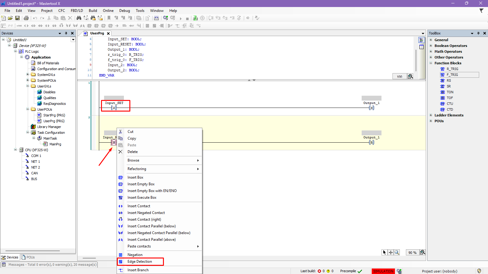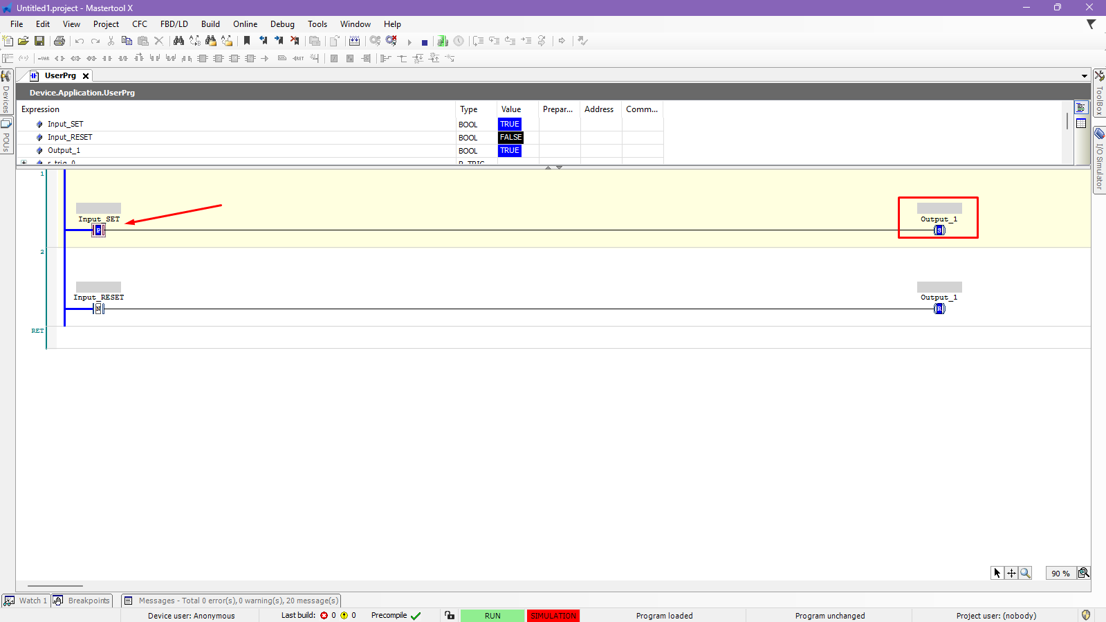The objective of this tutorial is to explain how to use P and N contacts in a MasterTool X project.