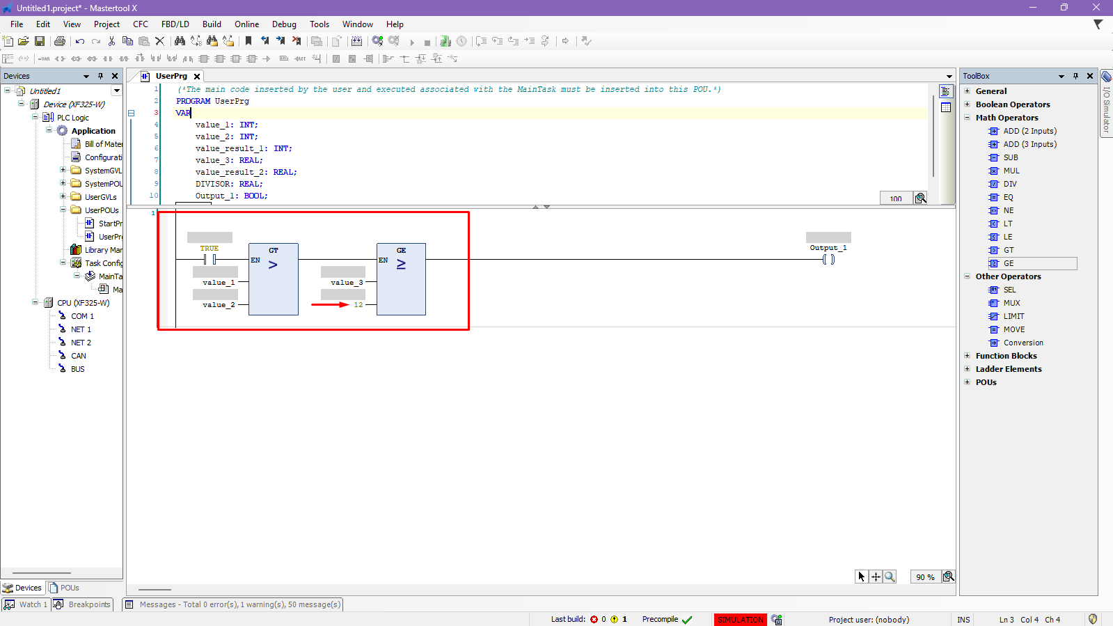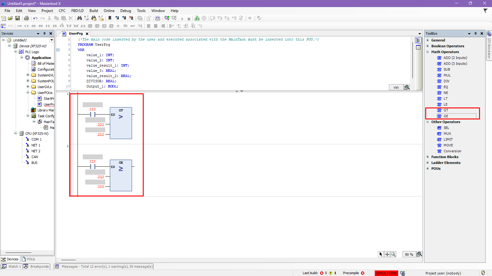 The objective of this tutorial is to explain how to use the comparison block with the greater than and greater than or equal to functions in a MasterTool X project.