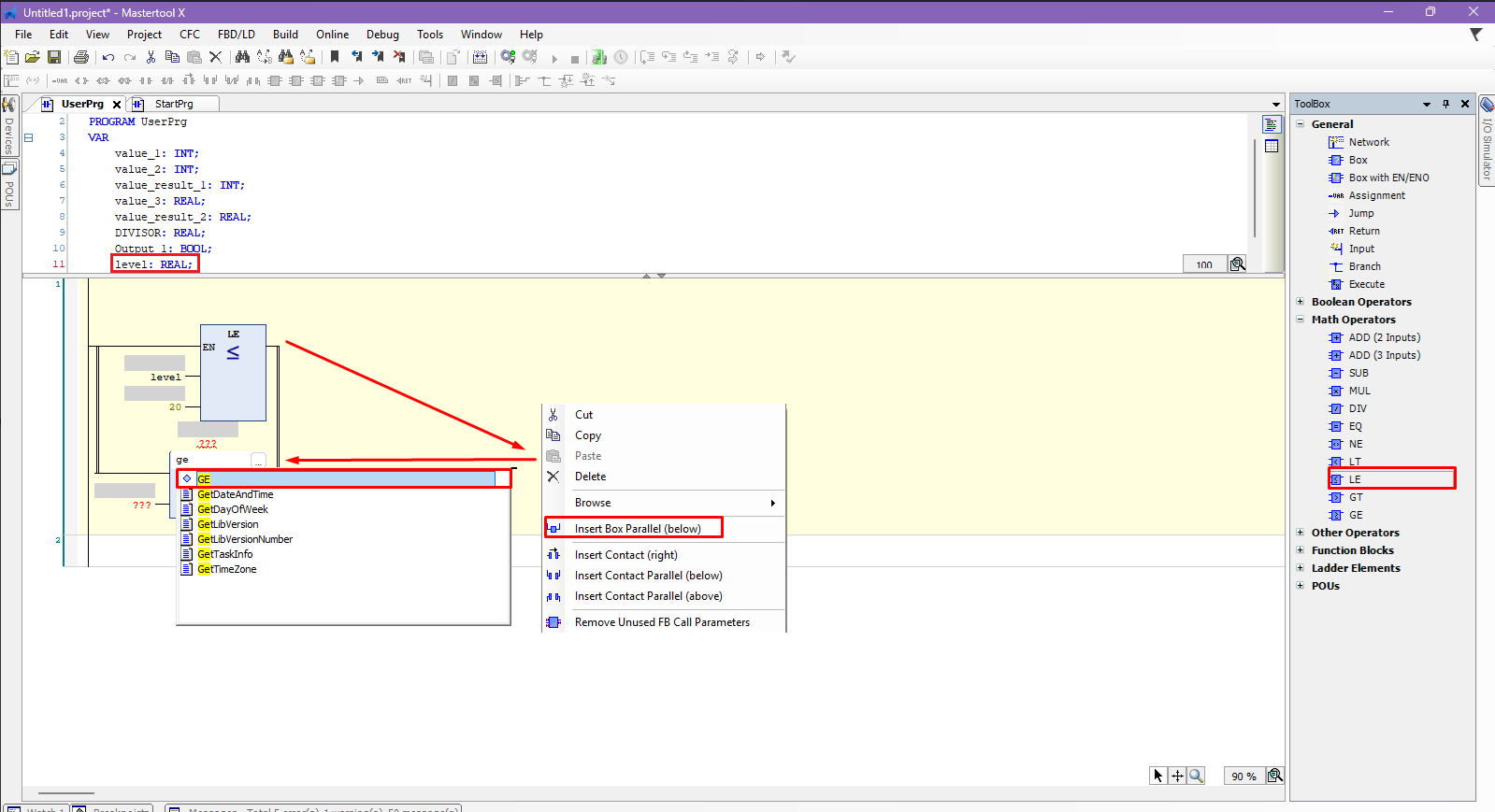 - Create a new network in Ladder logic.