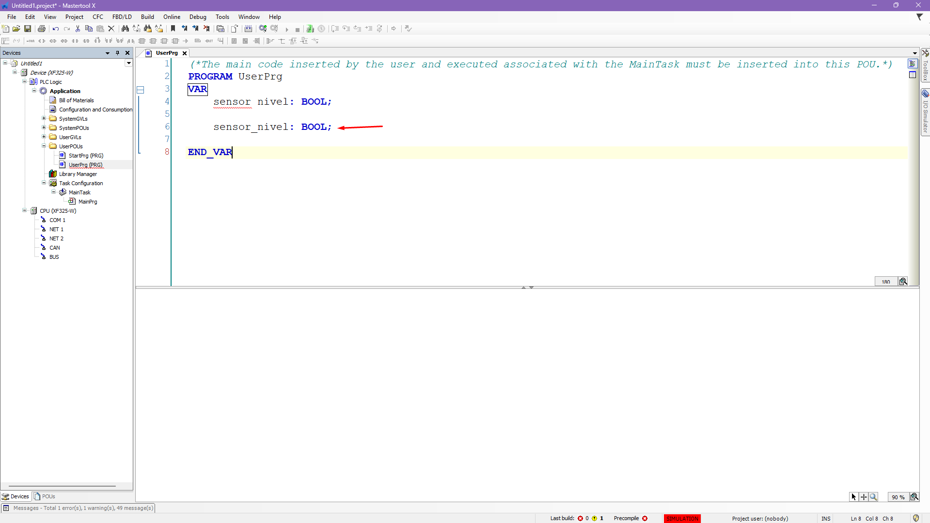 sensor_nivel : BOOL;Figure 3. Creating a variable with a space in the name