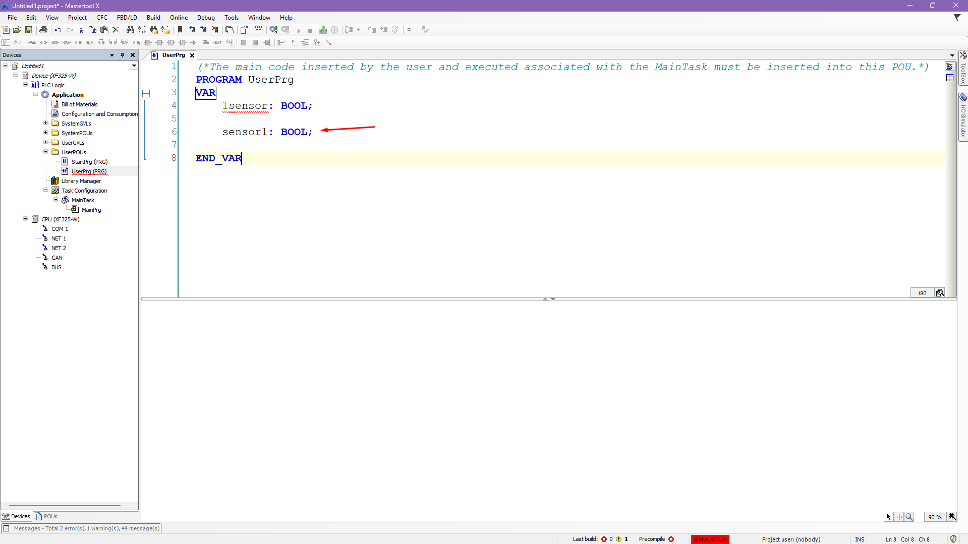 sensor1 : BOOL;Figure 2. Creating a variable with a number in the name