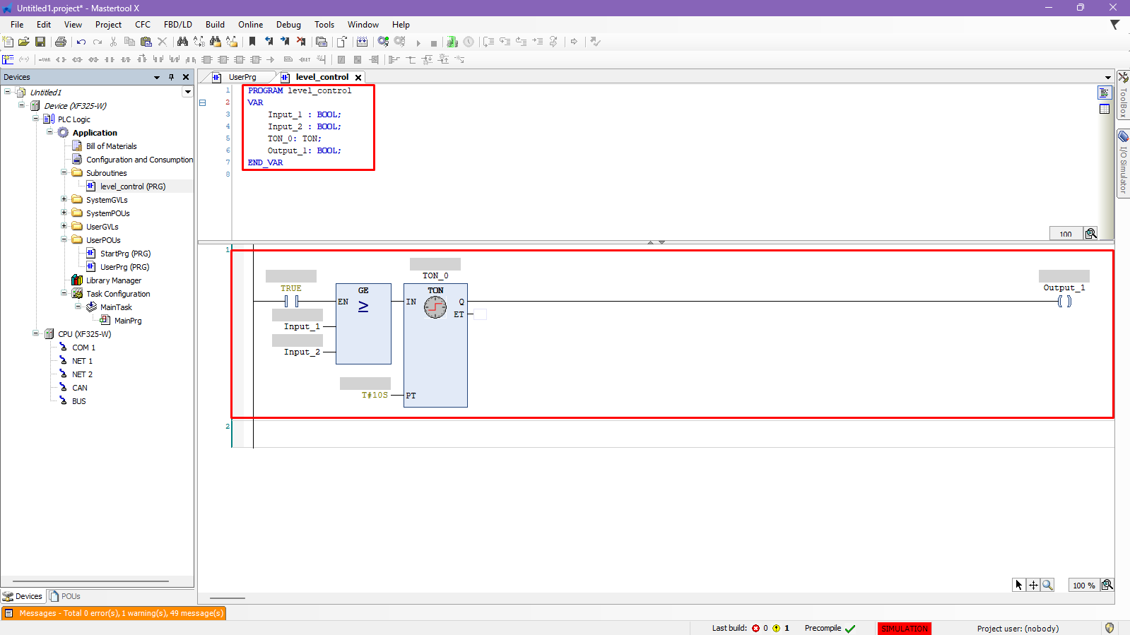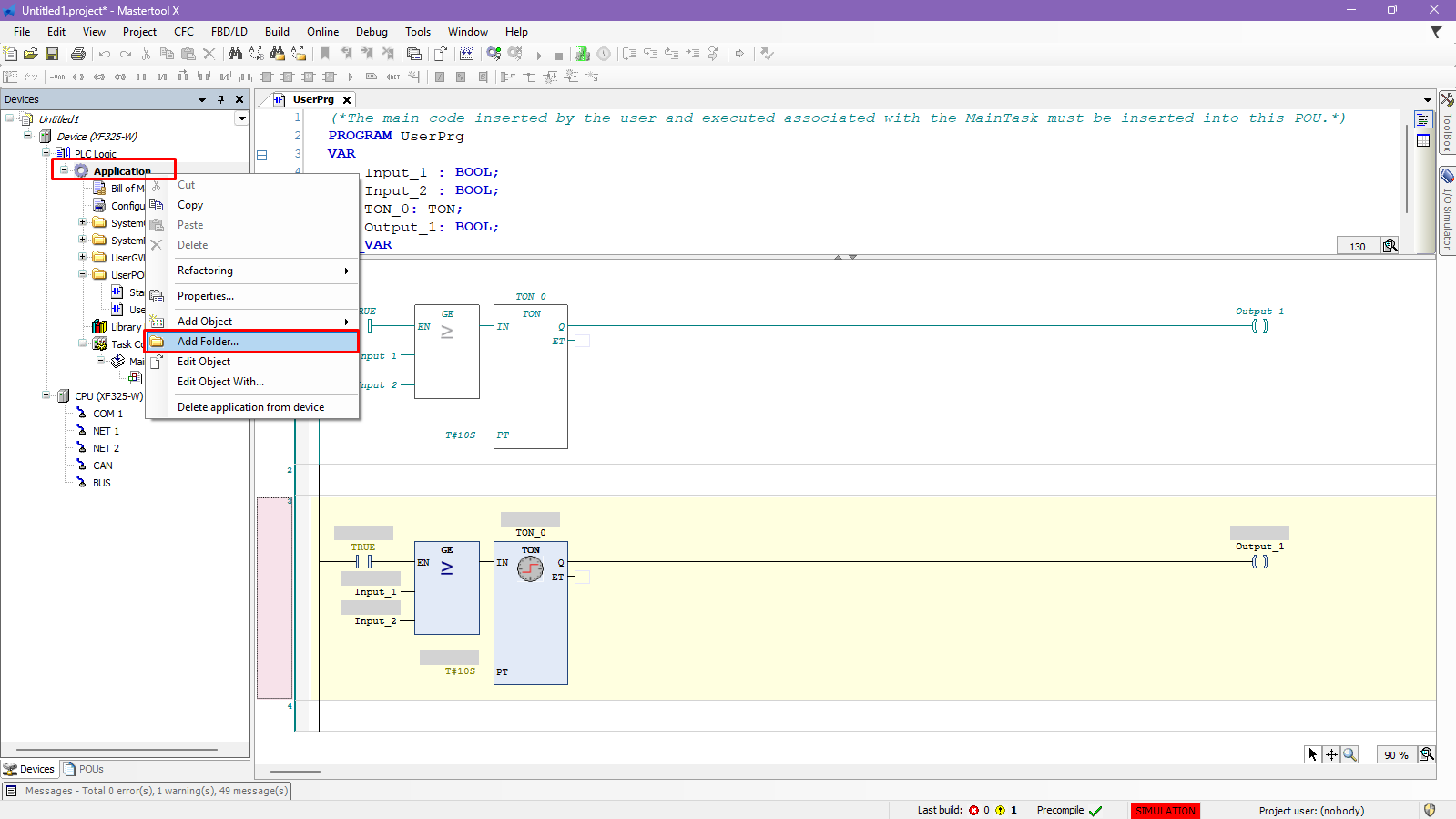 In this tutorial, a folder for subroutines will be created, a simple POU will be created, and finally, this subroutine will be called in UserPrg.