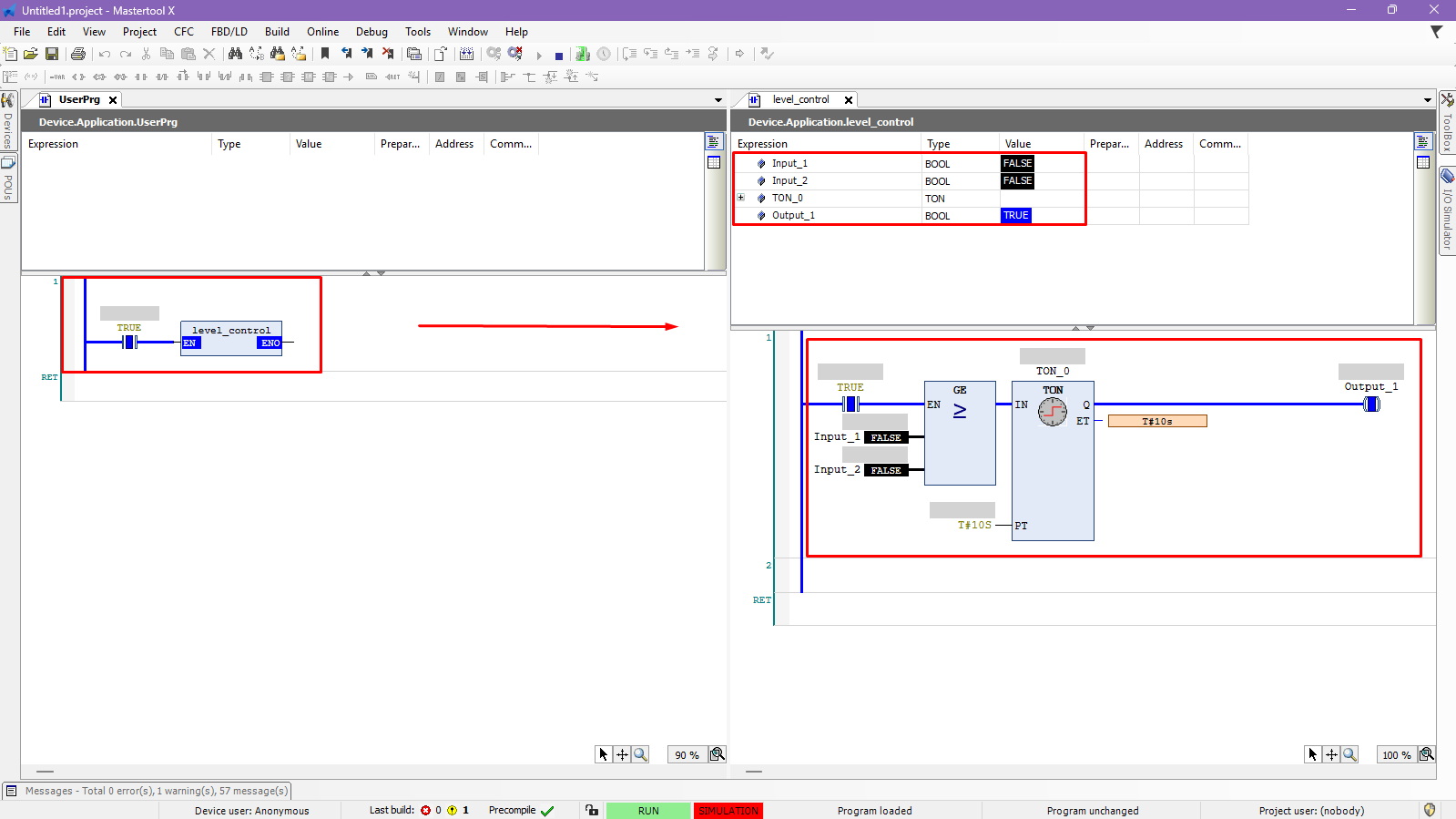 - Observe the operation of the POU's internal logic.
