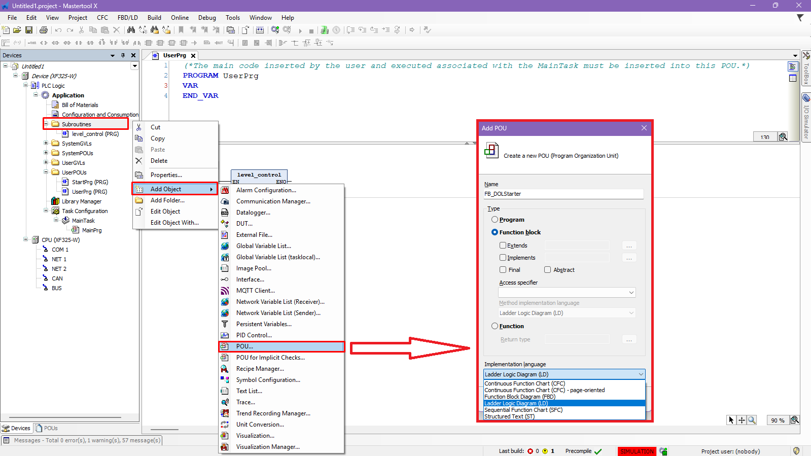 The objective of this tutorial is to explain how to create function block subroutines in a MasterTool X project.
