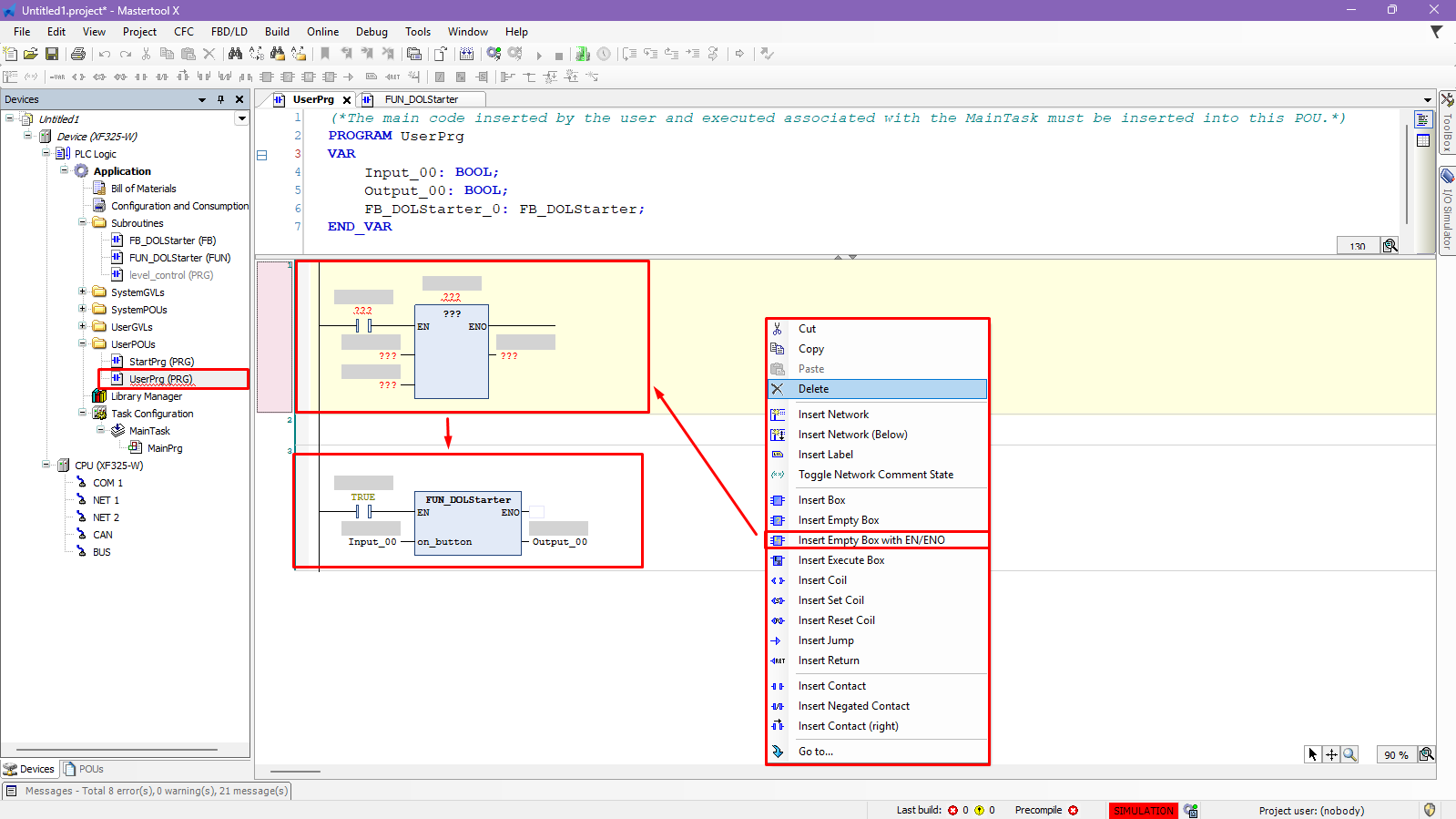 - Insert an Empty Box with EN/ENO or use the function directly in a logic block.