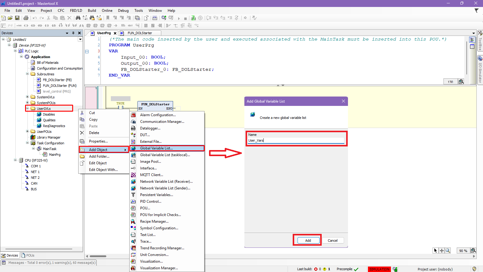 The objective of this tutorial is to explain how to create a global variable list in a MasterTool X project.