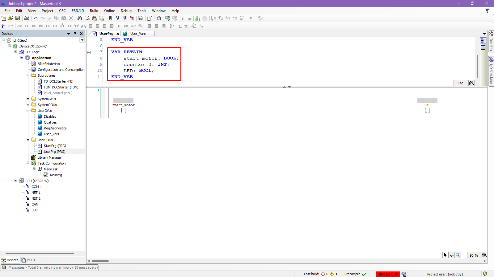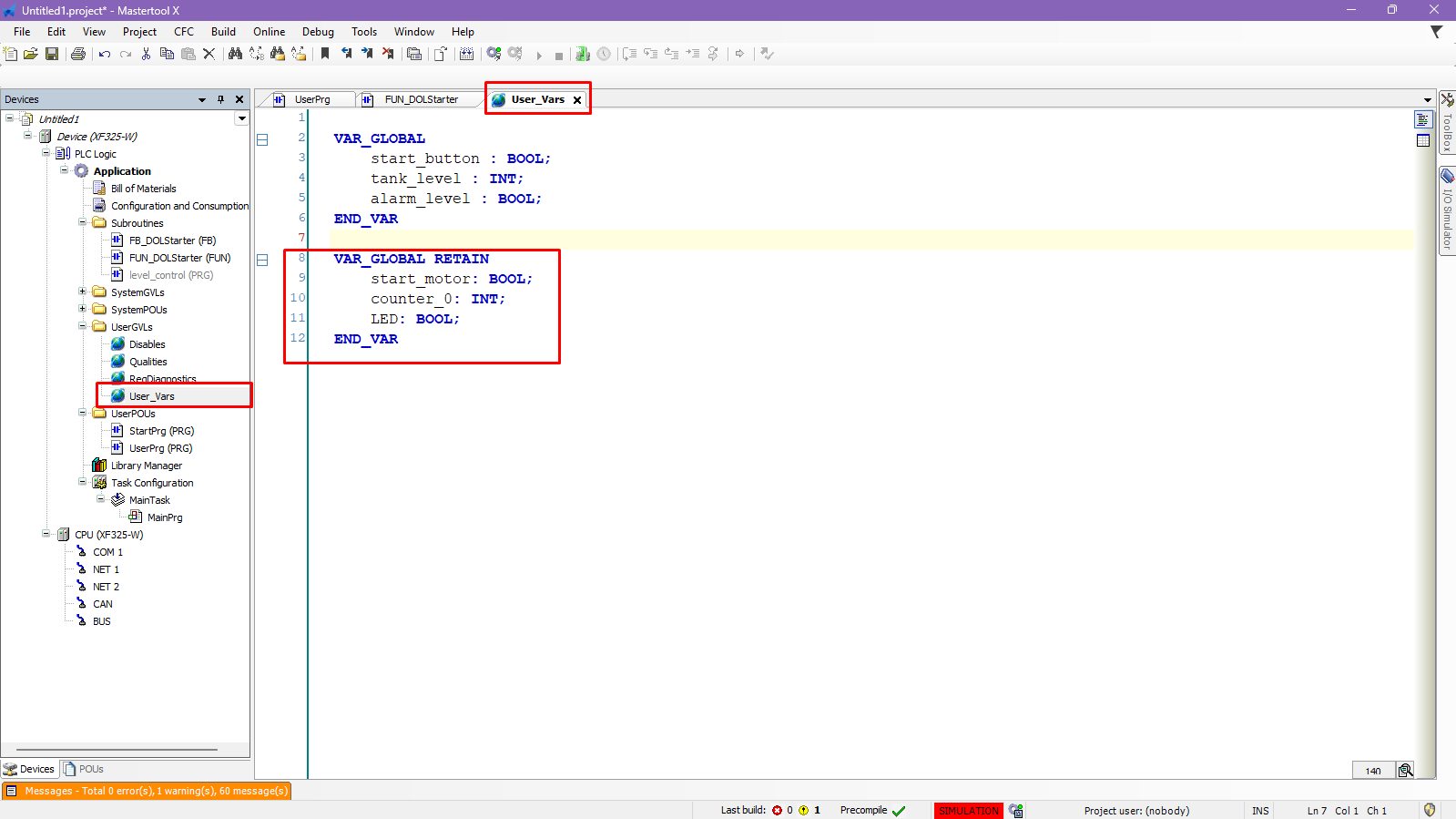 The objective of this tutorial is to explain how to create a list of retentive variables in a MasterTool X project.