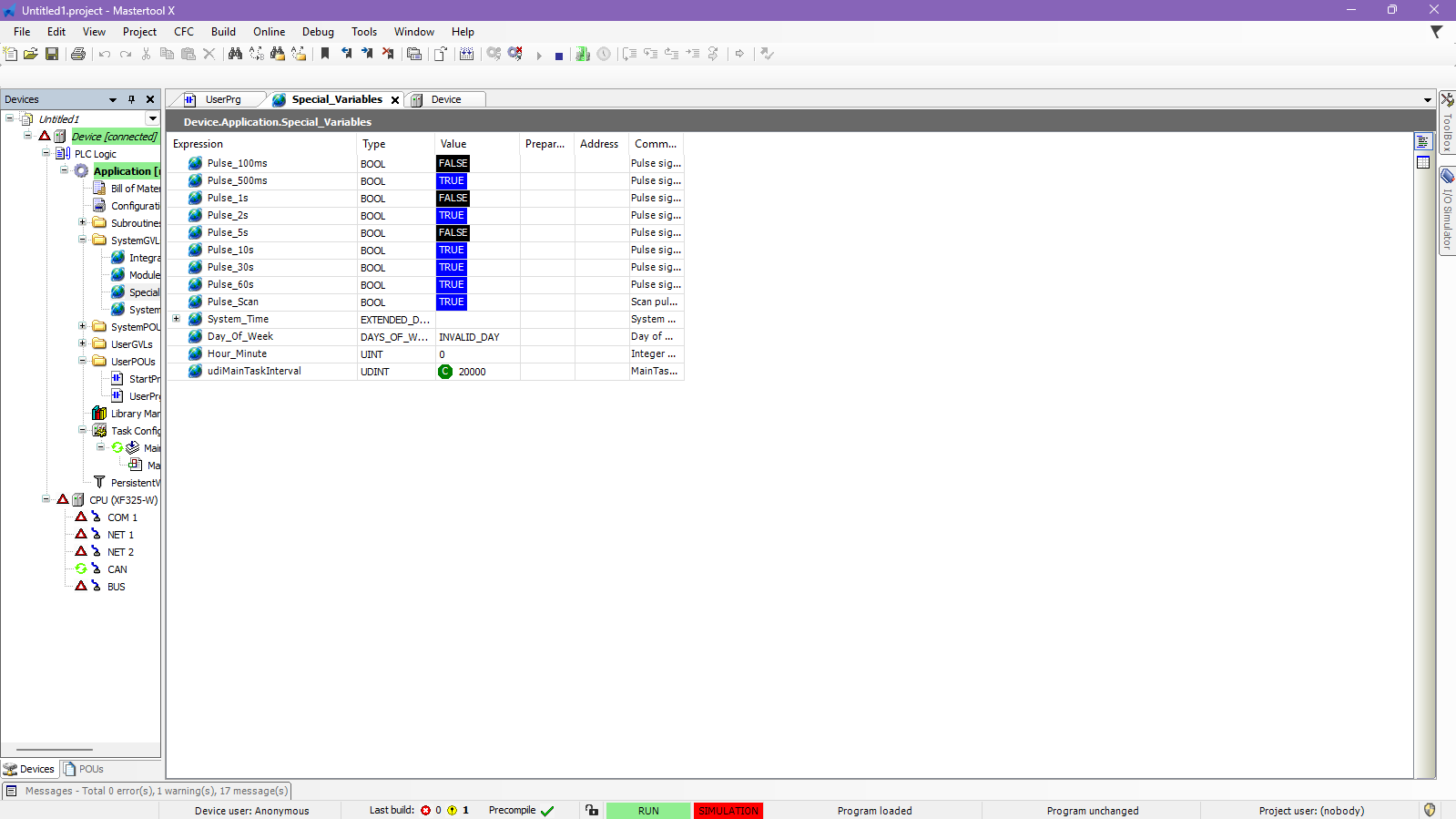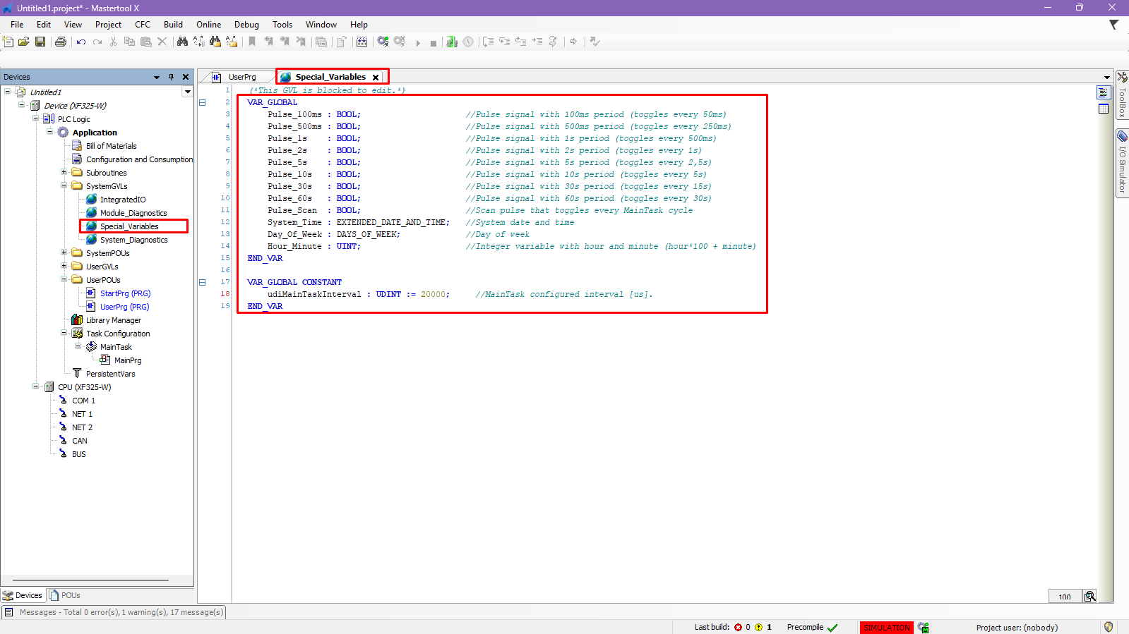 The objective of this tutorial is to explain how to use special variables in a MasterTool X project.