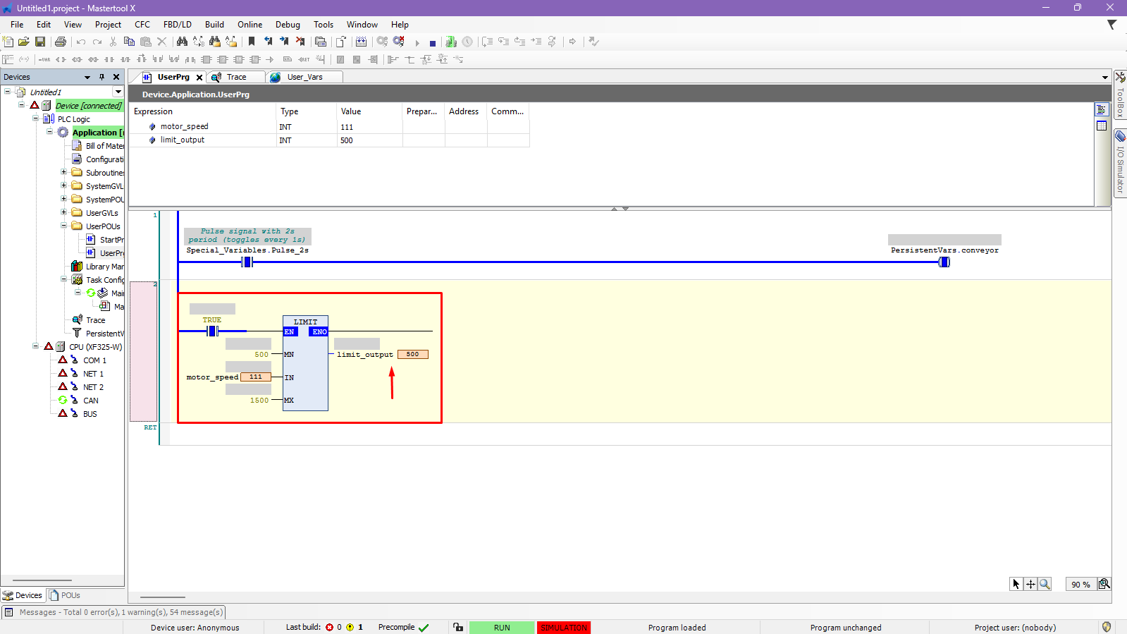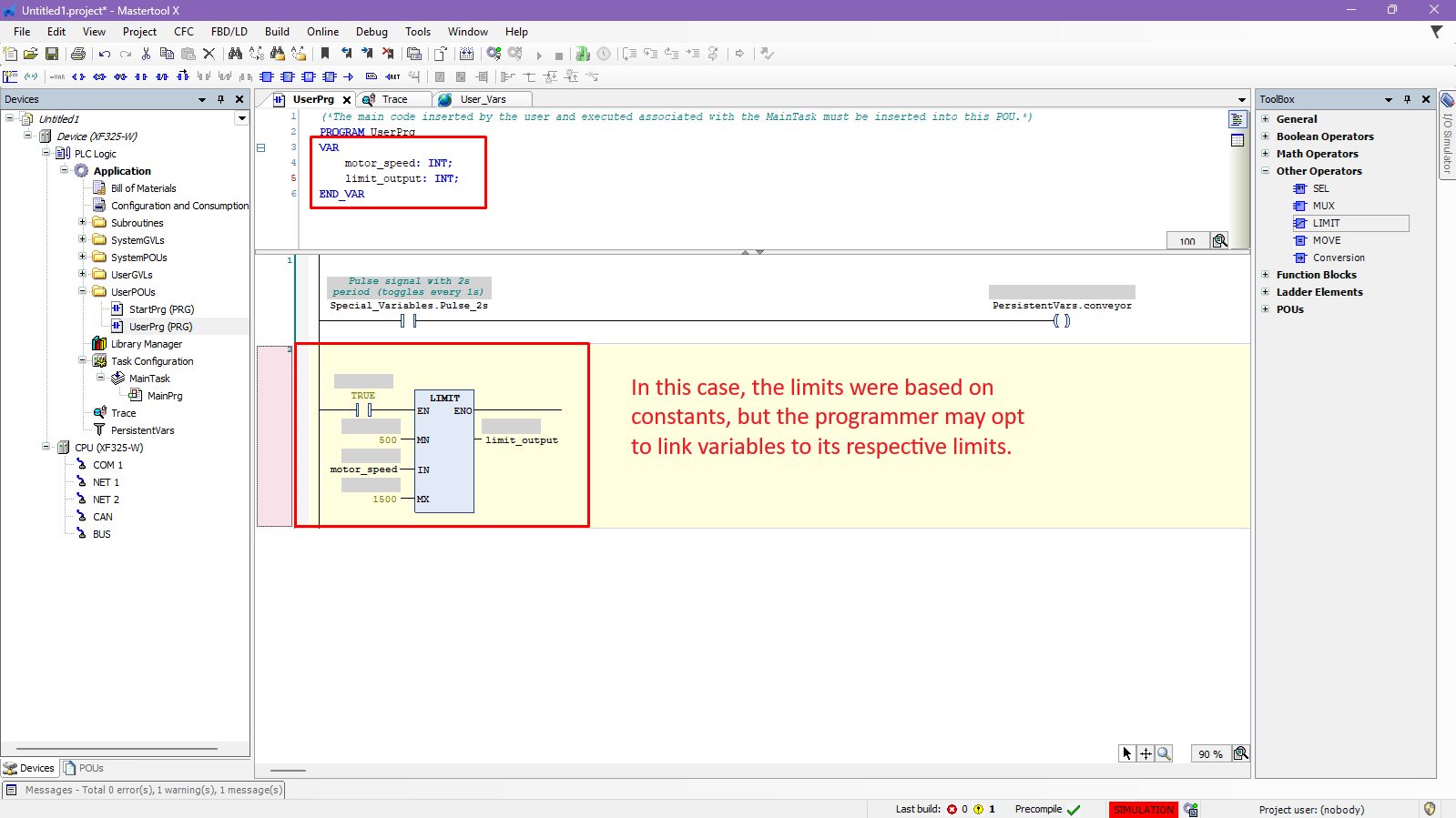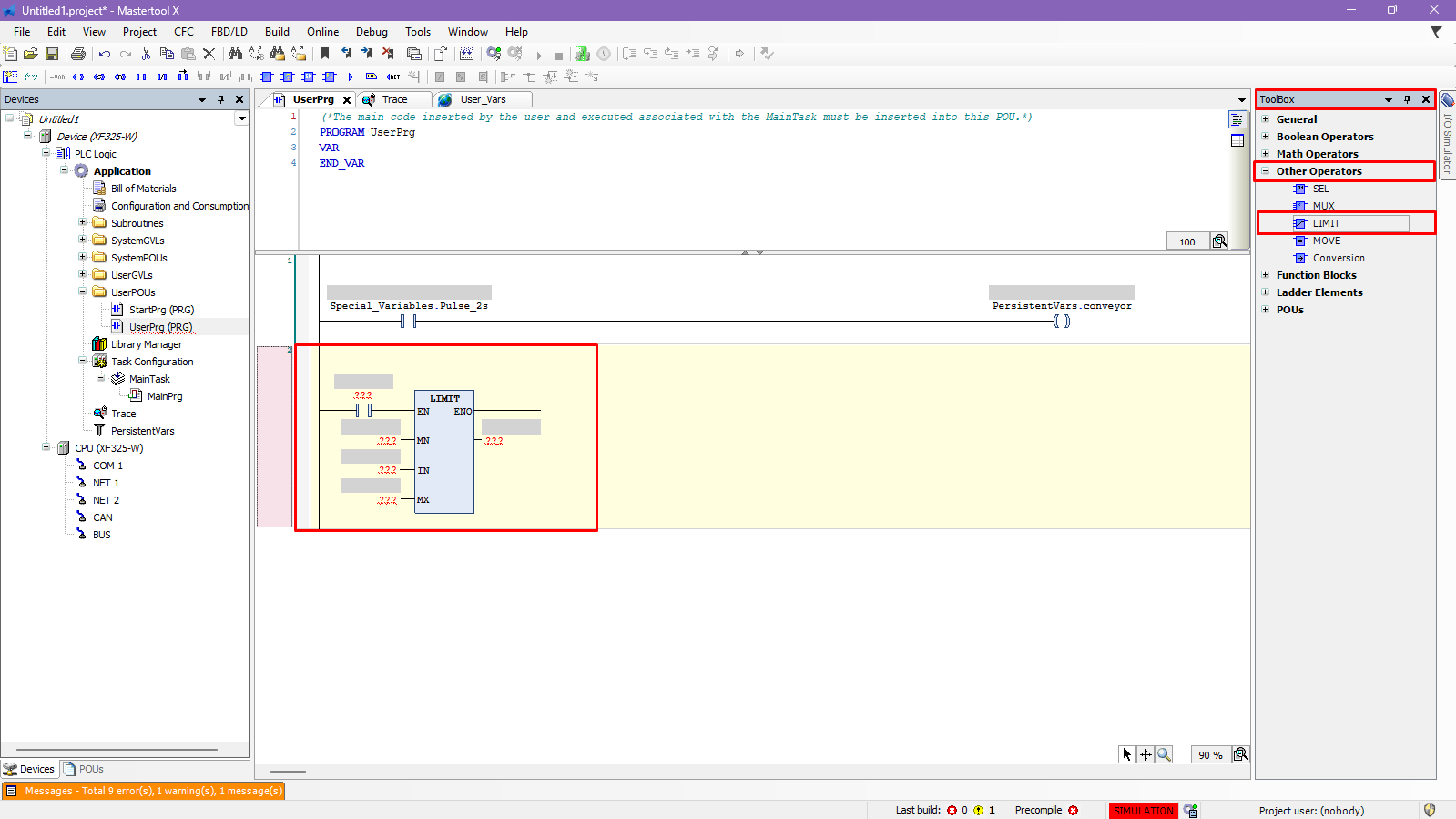 The objective of this tutorial is to explain how to insert and use the limit operator in a MasterTool X project.