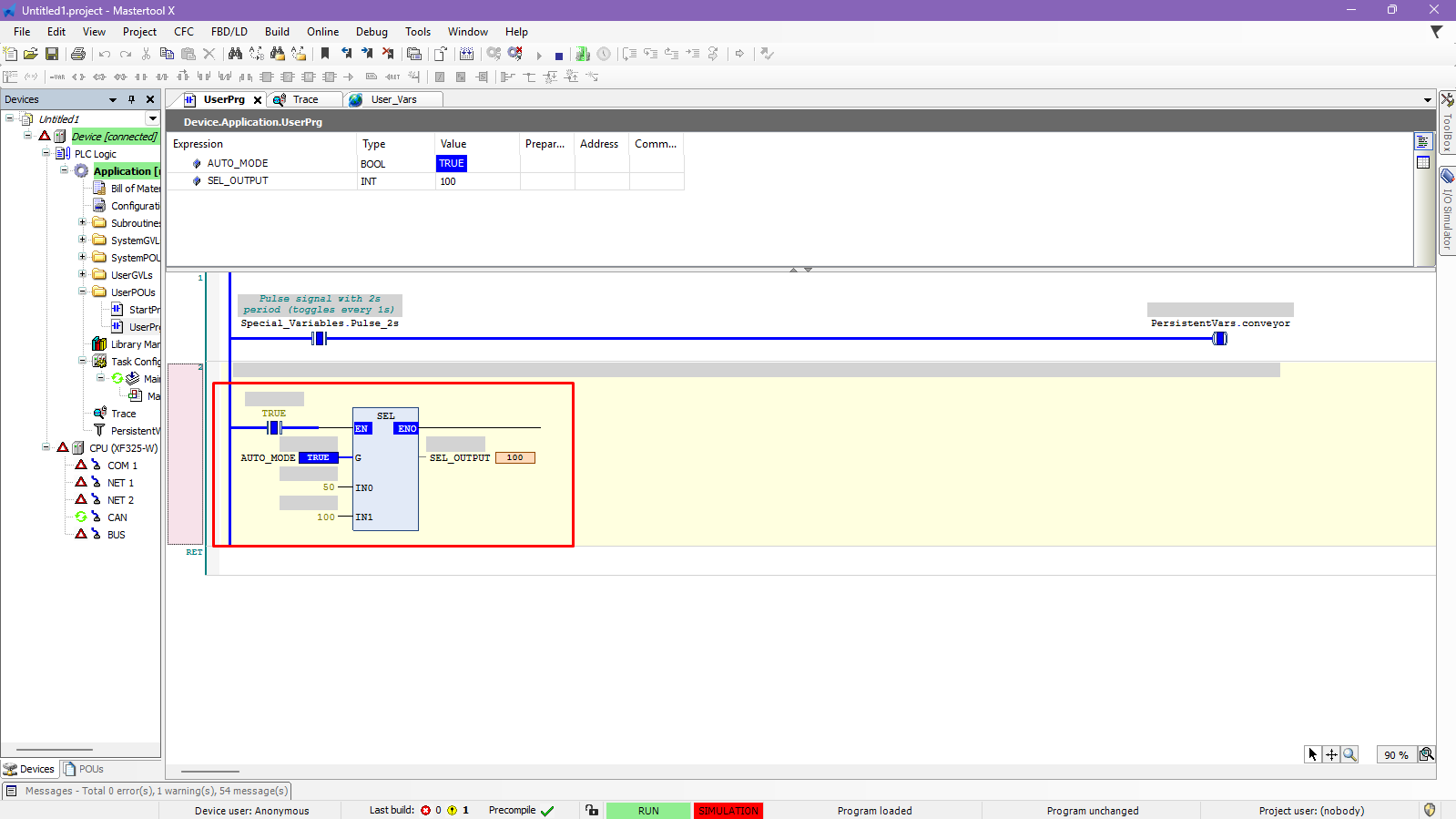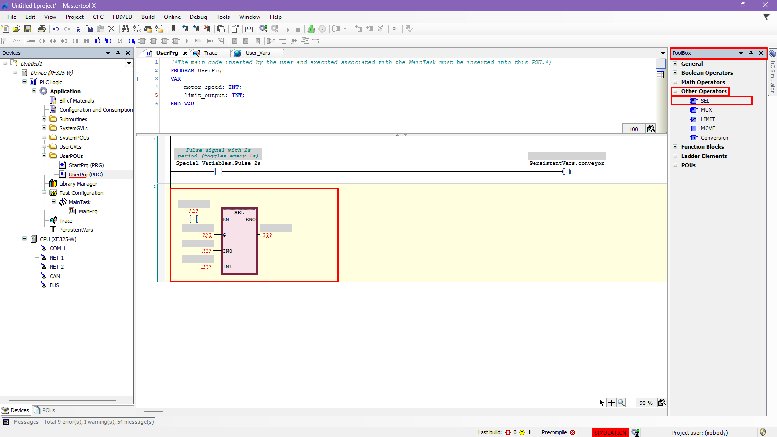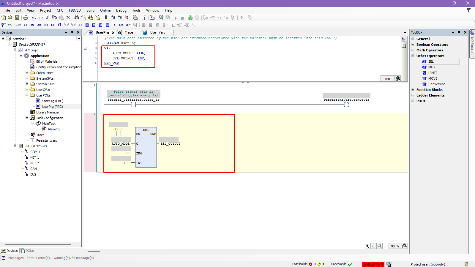 The objective of this tutorial is to explain how to insert and use the SEL operator in a MasterTool X project.