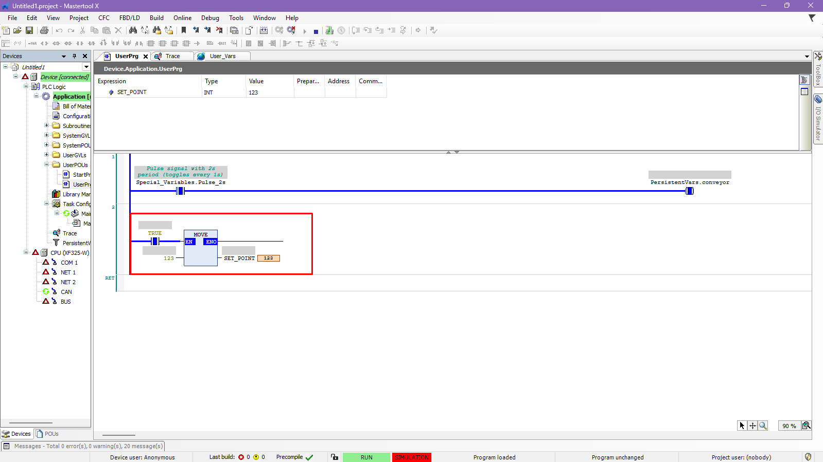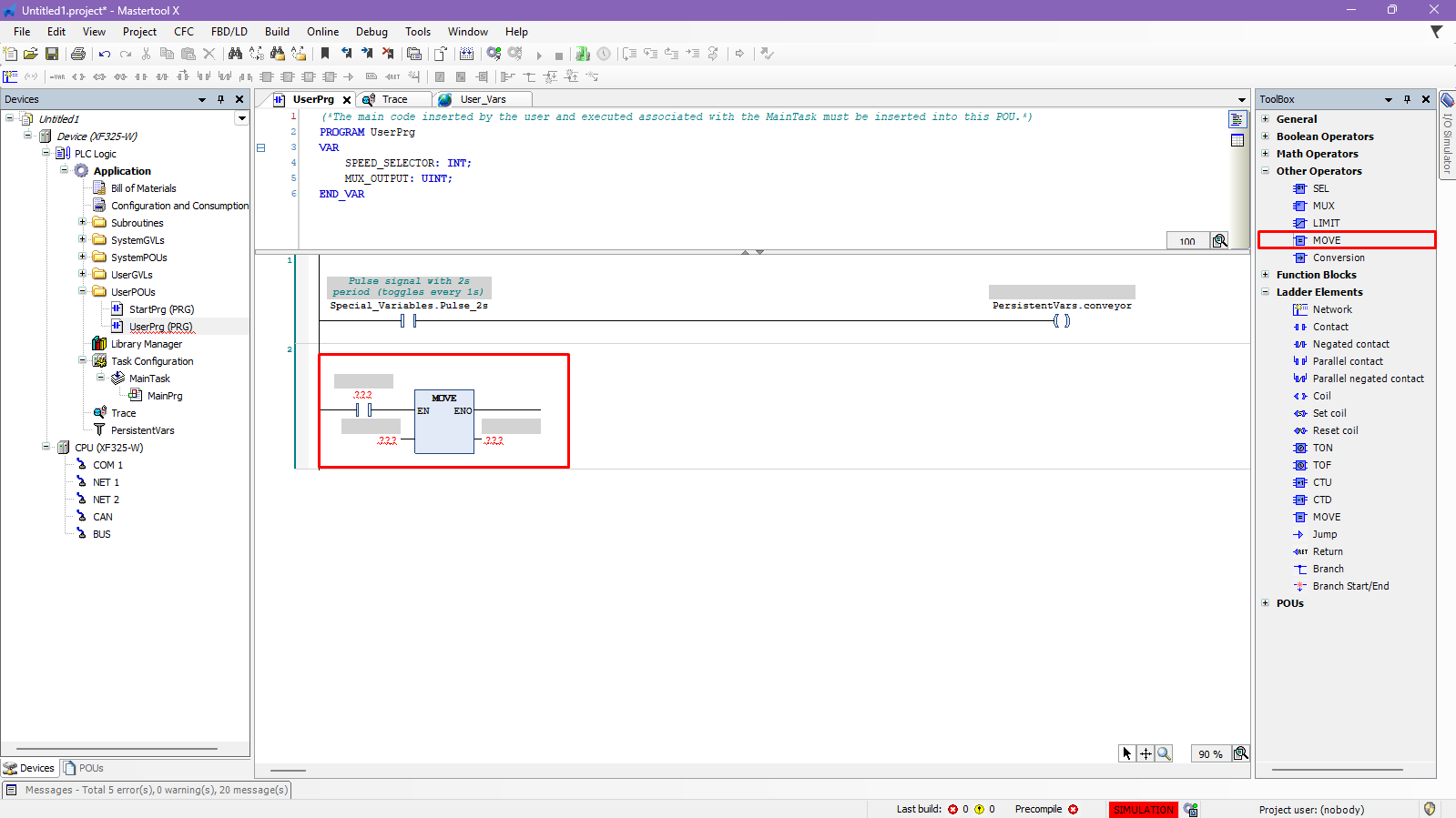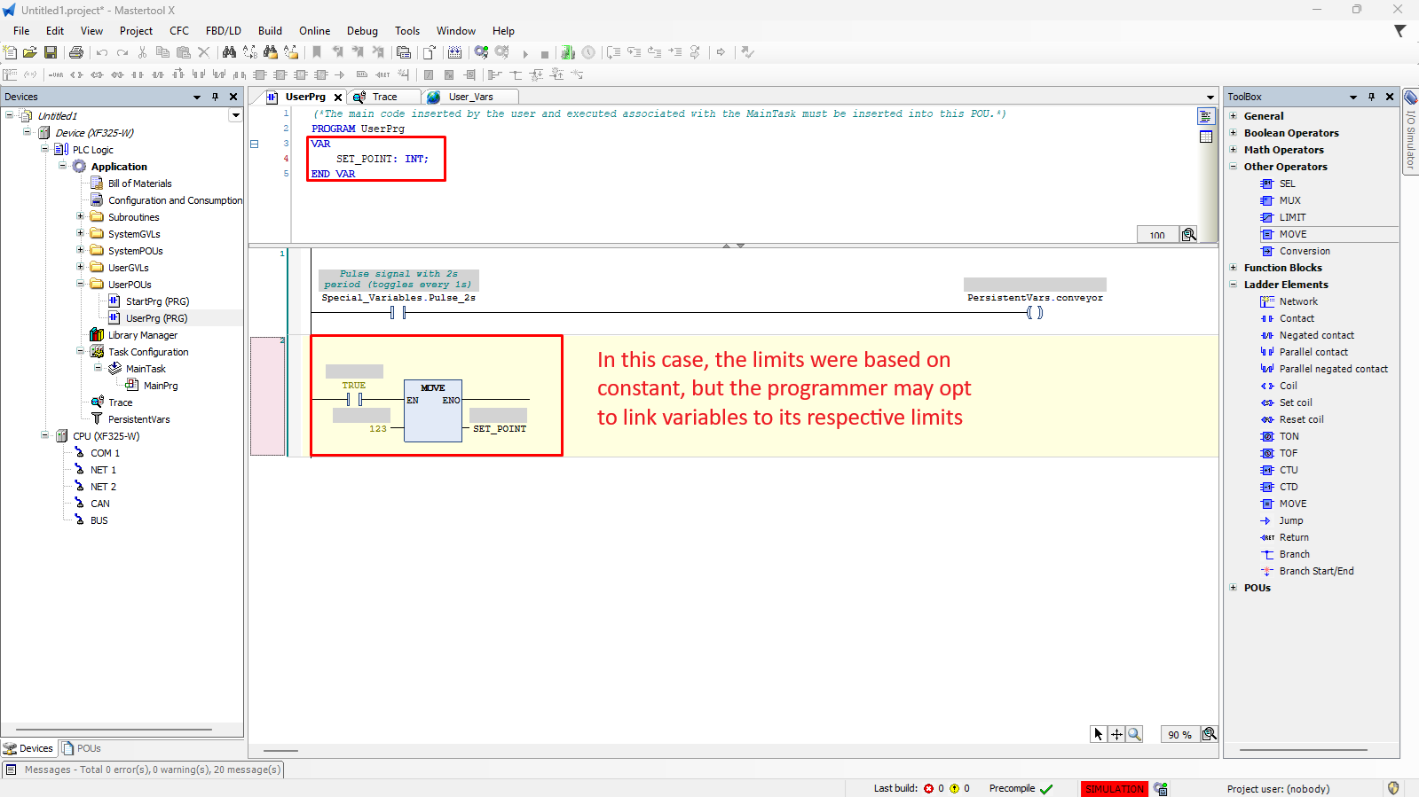 The objective of this tutorial is to explain how to insert and use the MOVE operator in a MasterTool X project.