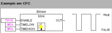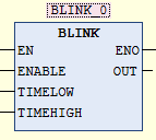 If ENABLE is set to TRUE, BLINK starts setting the output to TRUE for the TIMEHIGH period and then sets it to FALSE for the TIMELOW period.