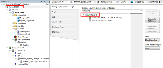 15. Now just download the application to the PLC. With the Ethernet cable connected between the computer and the PLC, go to Easy Connection and confirm that the PLC's IP is on the same network as the computer. Once this is done, click on Device and then double-click on Gateway for the software to scan the devices connected to the network.