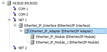 Right-click on NET1 then click on Fieldbusses >> Ethernet/IP Interface >> select Ethernet IP Interface and click add.