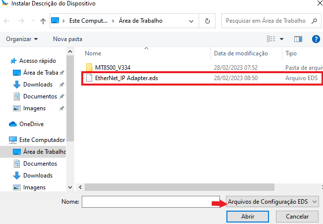Look for the EDS configuration file and click open. It will show that it was added, then click close.