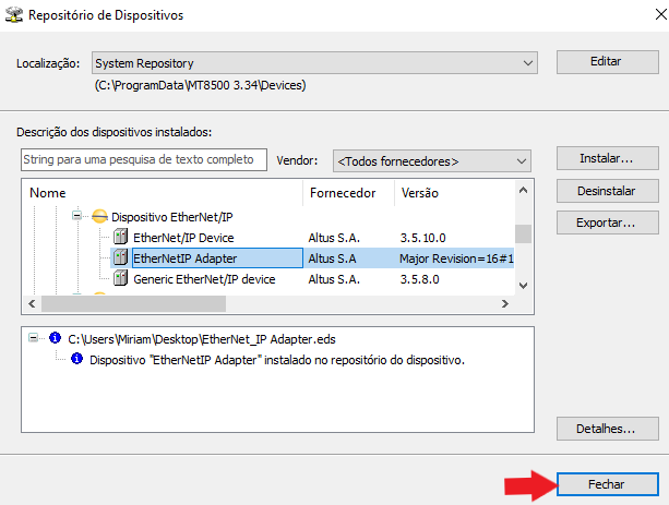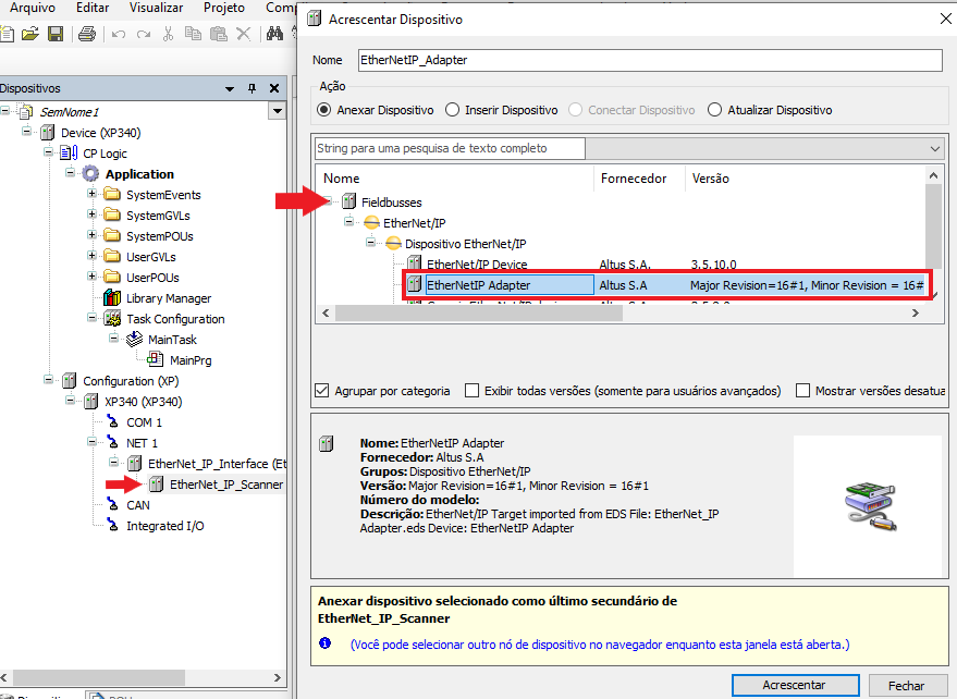 After that, select the added device, click again on Ethernet IP and select the Ethernet IP adapter option, double-click and close the window.