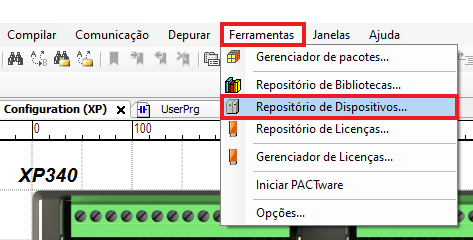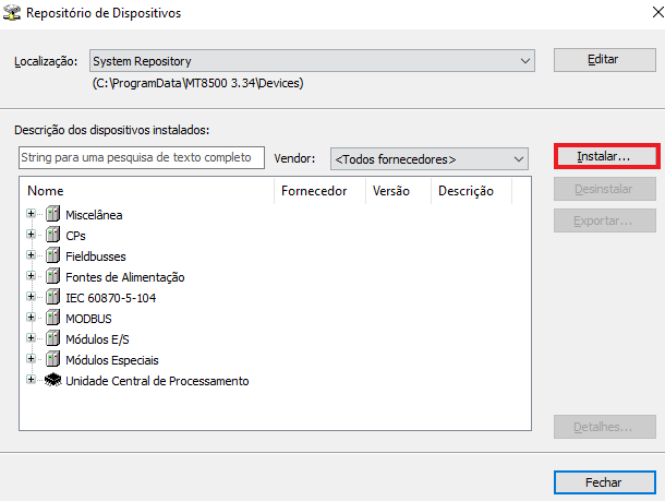 Now we will install the adapter configuration file. In Tools >> device repository. Click Install and look for your file that you saved previously, when we configured the adapter.