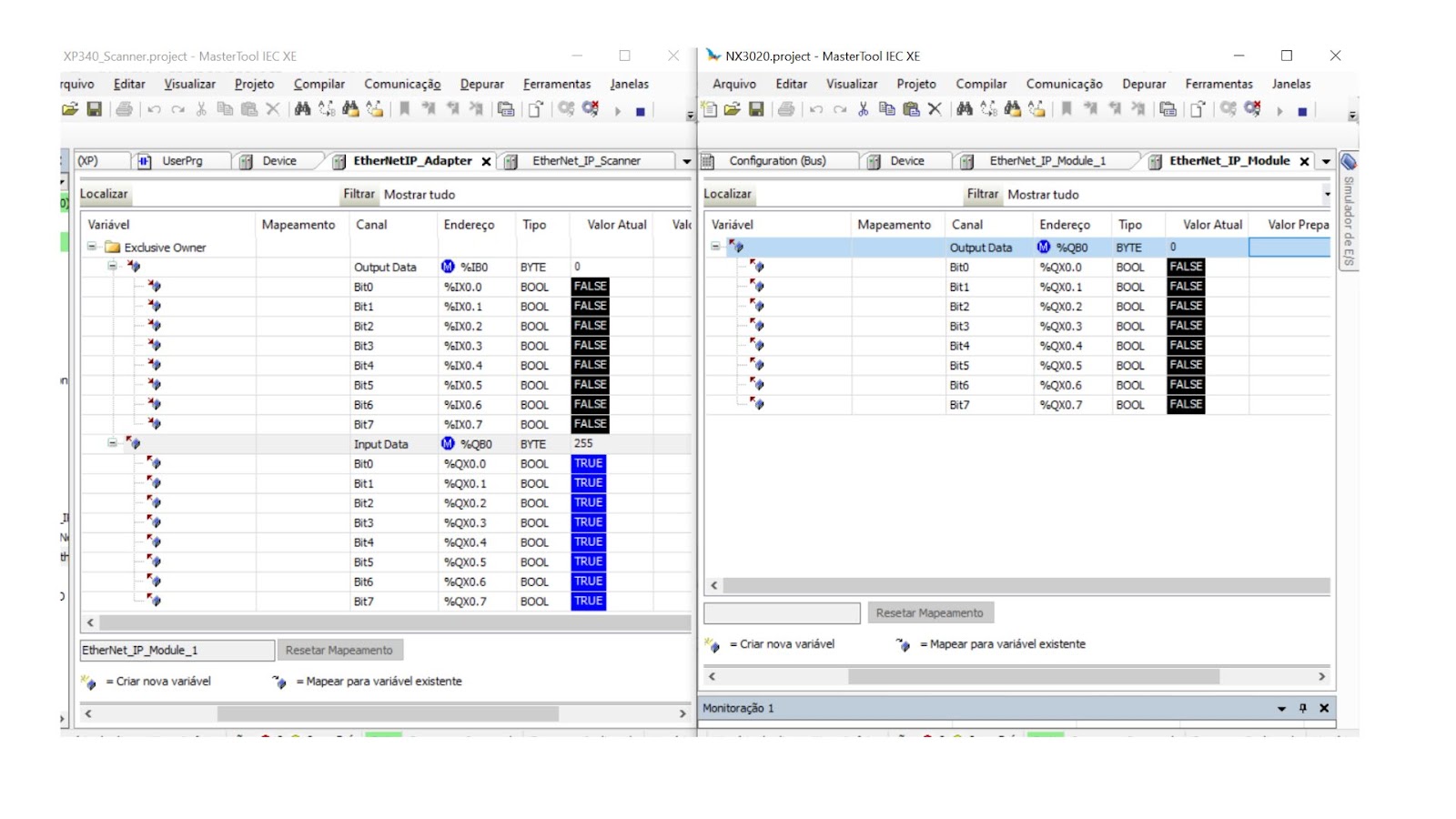 Select your network master PLC and download the program by clicking on the gear Then split the screen between the MasterTool project for the NX3020 (PLC Adapter) with the project for the XP 340 (scanner)