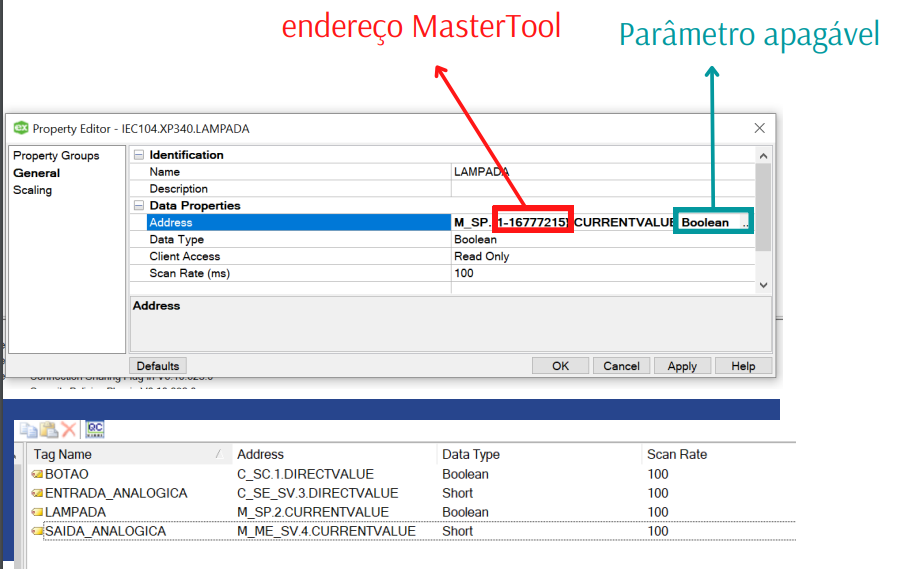 Next, we will add the tags by selecting the device >> Click to add a static tag >> enter the tag name (consult the driver manual or the table on page 13 to select the variable type), enter the same address that was used in MasterTool, click OK to add the tag and repeat this for the other tags.