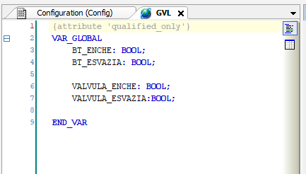 When the list opens on your screen, change the declaration type to textual mode (1), then delete the parameter above VAR_GLOBAL (optional if you want to use the global variable list throughout the project without having to declare the list name). And declare the variables as shown in the image beside. We will use 4 boolean variables.