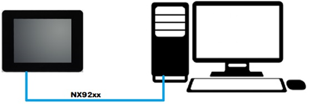 Na arquitetura deste tutorial foi conectada uma IHM P2102NK à um computador através do cabo NX92xx.