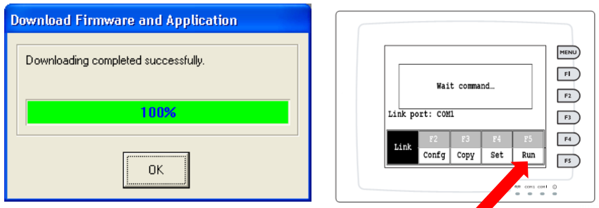 • Application -> Download Application and Firmware: Para realizar o download da aplicação e do driver de comunicação. Opção recomendada no primeiro download, após sugere-se utilizar a opção abaixo.