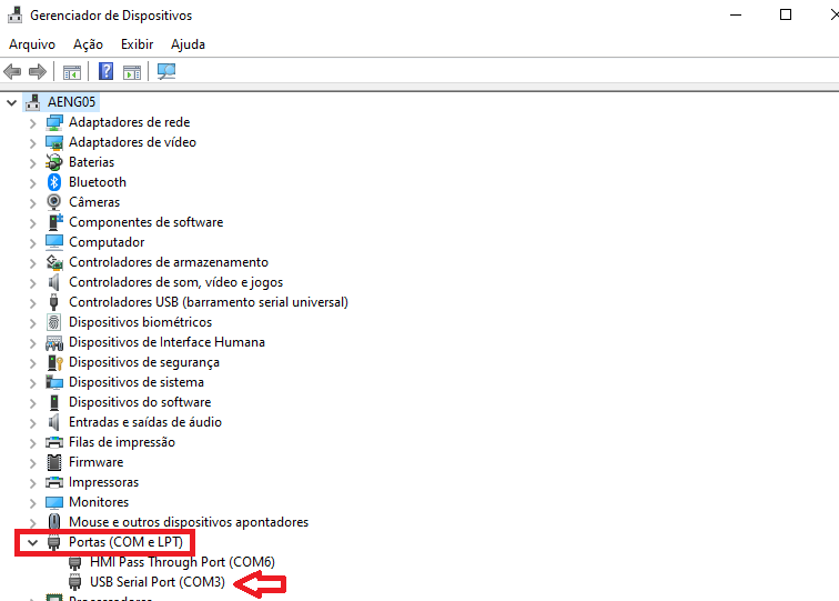 Para configurar o software PuTTY é necessário saber qual porta COM do notebook estaremos utilizando, para isso digite na barra Pesquisar, do seu computador, Gerenciador de Dispositivos e em Portas e verifique qual a COM está sendo utilizada, conforme figura abaixo: