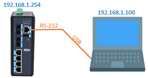Na arquitetura deste tutorial, conectou-se a porta console do switch um cabo RJ45 para RS-232, que acompanha na caixa do switch, a um conversor serial RS-232 para USB e posteriormente na porta USB do notebook.