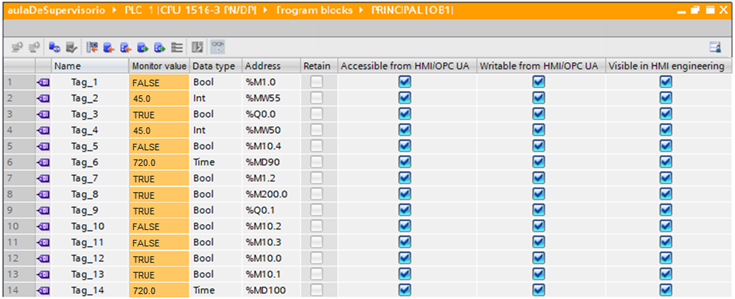 Na aba Principal [OB1], será desenvolvido o programa. O programa pode ser de acordo com o sistema de supervisão.