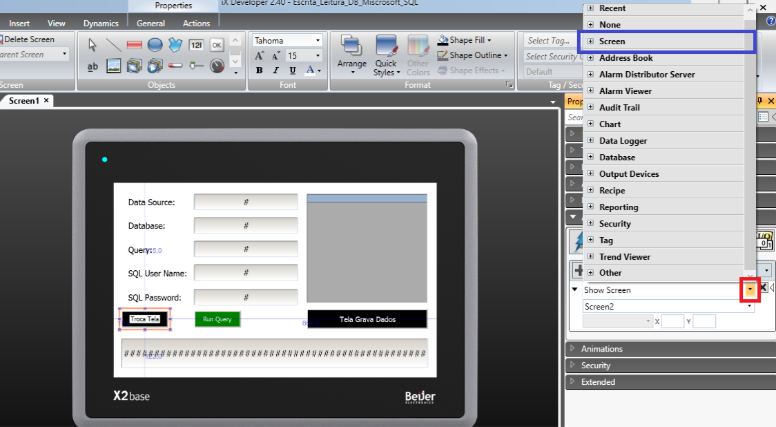 Neste tutorial estão descritos os procedimentos para capacitar o usuário a configurar a IHM X2 conectada com um transmissor de peso por MODBUS TCP/IP e viabilizando a comunicação com o banco de dados MSSQL Server, que é um banco gratuito. Estes dados coletados da pesagem do transmissor de peso e alguns objetos configurados no software iX Developer são armazenados no banco e acessados através da IHM, o script de controle está na própria tela da IHM neste exemplo.