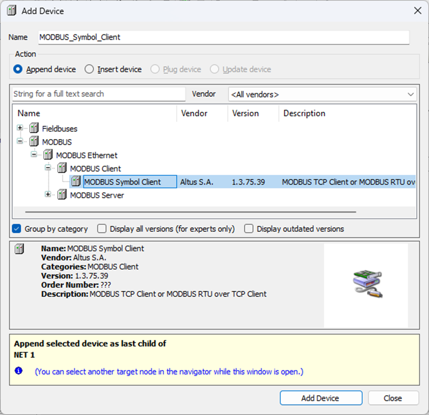 Figura 4. Adicionar MODBUS Symbol Client