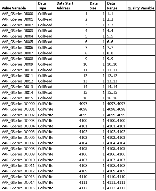Figura 7. Tabela de mapeamento Modbus
