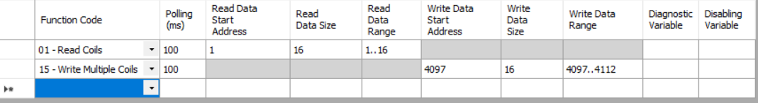Além desses endereços no mapeamento Modbus, também devem ser adicionadas as requisições dos mesmos.