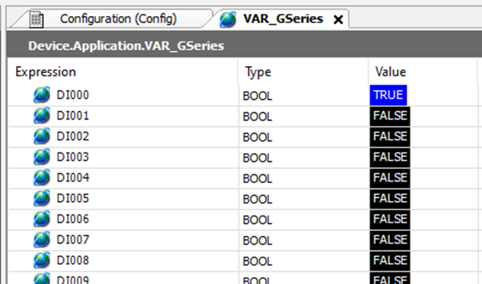 Após alterar o status das variáveis, o valor pode ser observado na coluna Value, conforme observado na Figura 9.